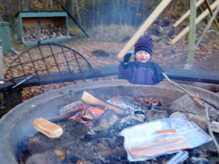 Första snön kom ju idag. Alfred var sugen på att gå ut och visa Miranda så de gav sig ut efter maten. De började med att göra en snölykta.