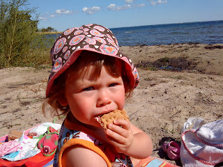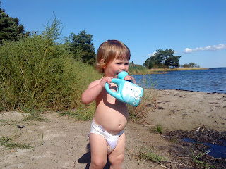 Idag var första gången jag sa "Hej då" till Miranda på dagis. Det gick jättebra! Hon brydde sig inte alls... Hon satt och lekte ute när jag kom fram till henne och sa att jag skulle gå och då ville hon bara visa vad hon gjorde och jag sa "Du får leka med Lena, hej då, nu går mamma". Och hon fortsatte bara leka. Skönt! Sen var hon ute och lekte 30-40 minuter och jag var inne med de andra föräldrarna och sedan gick vi ut och då lekte hon i sandlådan och tittade upp på mig när jag kom och sa "Titta!" och visade att hon grävde i sanden. Inget dramatiskt varken avsked eller återkomst. Härligt, hoppas att det fortsätter så! Är ju en mardröm om hon ska skrika vid lämning framöver. Nästa vecka blir det 2 h per dag istället för 1,5 h, hoppas Miranda orkar det, hon har varit rätt trött nu sista dagarna.