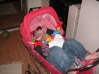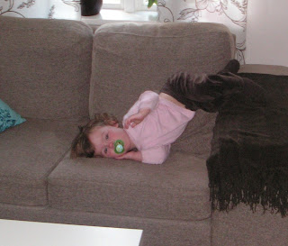 När vi åker bil så spelar vi oftast en barn-CD med de klassiska barnlåtarna, Imse vims, BäBä, Ekorrn satt, osv. Även Dansar min docka finns med där. När den spelades förra veckan när Miranda och jag var på väg någonstans, räcker Miranda ut tungan. Jag skrattar och säger nåt om tungan, men fattar inte varför den kom precis där?? Någon sekund senare kommer tungan igen. Va?? Låten går ju såhär om du inte minns; Dansa min docka medan du är unger, när du blir gammal så blir du så tunger. Dansa min docka medan du är unger, när du blir gammal så blir du tung. Tunga, tunger, tung, där har vi det!!