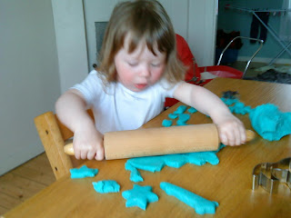 3. Häll vattnet över mjölblandningen och blanda väl. Låt svalna lite och vips har du en härlig och giftfri (men äcklig!) lera att dega med!