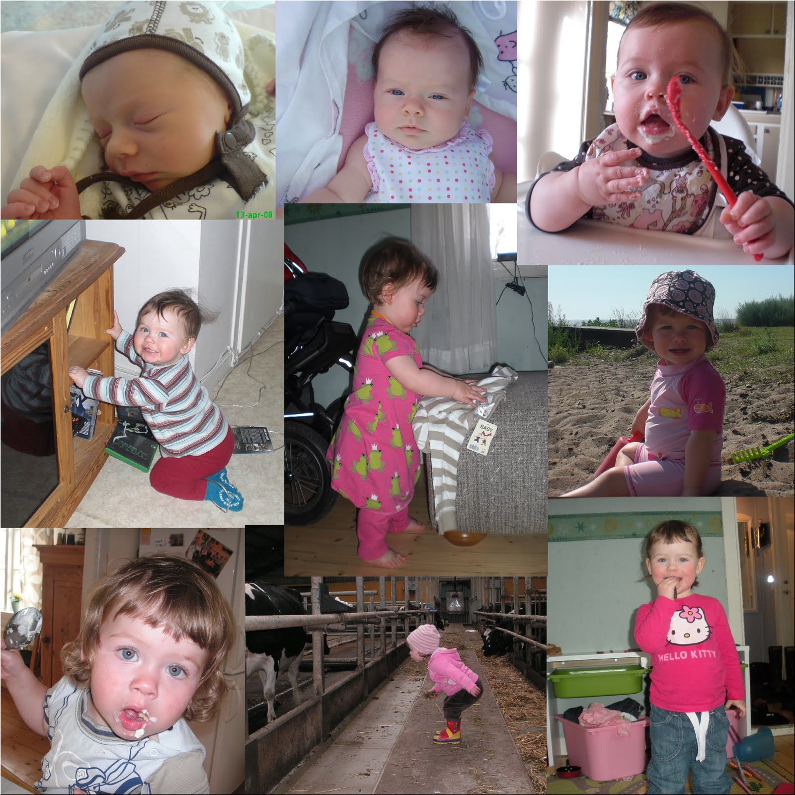 Tänk vad mycket som händer på 2 år! På första bilden är hon så liten och hjälplös. Vi, hennes mamma och pappa fick mata, klä på, byta blöja, och ge henne massa massa kärlek. Och nu, bara två år senare äter hon själv, gud nåde den som försöker mata henne! Hon klär på sig alla plagg utom tröjor själv, fast helst klär hon av sig allt och springer omkring nakenfis. Och blöjor, ja de vill hon helst inte veta av alls, men till natten är det fortfarande nödvändigt, och när hon ska vara ute länge. Men kärlek blir hon fortfarande överöst med, och vi med! Så visst har hon blivit stor vår finast lilla tjej!