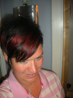 Jag var hos min fina frisör Maja igår. Direkt när jag kom skrattade hon åt mitt långa hår, hon kan inte förstå hur det kan växa så fort. Men hon var också glad för som hon sa "då har vi ju lite kul längder att jobba med". Hon berätta snabbt för mig att hon tyckte vi skulle färga si och så och klippa lite osymetriskt och långt här och "sax över kam" där. Ja ja sa jag, det blir nog bra. Sen tvättade hon och gick sen lös med saxen. Vi babblade på om ditt och datt som vanligt och snart började hon föna och kleta i vax och vips så var resultatet färdigt att beskåda! Jag är själv mycket nöjd med resultatet, Miranda tycker det är konstigt och Alfred sa väl typ, Oj!. vad tycker ni??