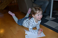 Nu har jag gått in i den sista veckan (förhoppningsvis!) av graviditeten. Jag är trött och stel och otymplig. Mest trött. Igår gick jag igenom BB-väskan och packade i lite som jag upptäckte saknades. På kvällen igår kom en känsla över mig att det kanske var nåt på g, jag hade svårt att bli färdig och komma i säng. Tänkte att jag inte skulle bli förvånad om jag vaknade av värkar. Men nähe, jag sov hela natten (!), ända till 05.30 då det var dags för toabesök, men inga värkar. Och inga andra tecken på att någon förlossning är på gång. Idag har min gamla kompis Karin varit här med sina sötingar Vilgot och Sigrid, det blev massa lek, en del bus och prat. Härligt med sällskap både för mig och Miranda! Och Sigrid passade dessutom på att ta sina första stapplande steg här i vårt vardagsrum!