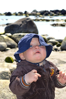 Filip sjunger "Sjörövar-Fabbe farfars far..." med hög och rejäl röst ut över havet! |