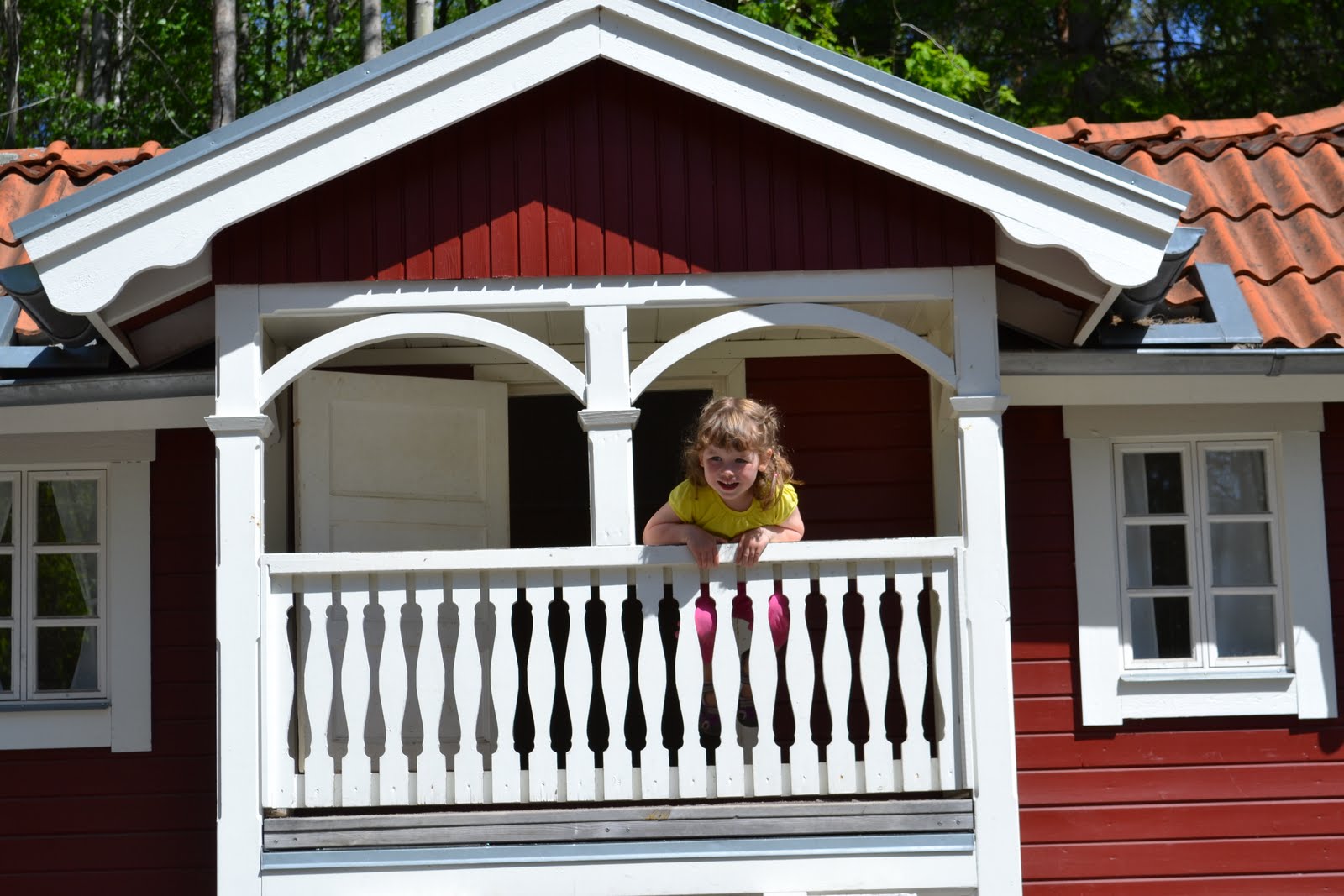Som jag skrev igår så har vi varit på Astrid Lindgrens värld idag. Vilken värld sen. Så himla fint och mysigt! Miranda älskade att springa ut och in i de små husen, hon tyckte det var spännande med skådespelarna som skulle vara Emil, Ida, Alfred, Pippi med flera. Och sen fanns det ju flera lekplatser med gungor, och gunga som hon älskar så! Först när vi kom var det lite kallare än väntat, 14 grader och väldigt blåsigt, men det blev varmare och varmare under dagen. Det känns verkligen som att vi tog rätt beslut att åka nu, en vardag på försäsongen, det var inga köer till nånting, men ändå lite folk så att det inte kändes öde. Lagom många skådespelare och teatrar för att man skulle kunna se, men också hinna leka. Vi är helnöjda hela familjen helt enkelt!! Ett extra plus till det fina, lugna amningsrummet med gratis blöjor.